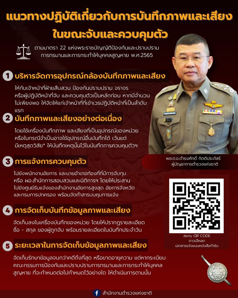 นวทางการปฏิบัติเกี่ยวกับการบันทึกภาพและเสียงในขณะจับและควบคุมตัวตามมาตรา 22
