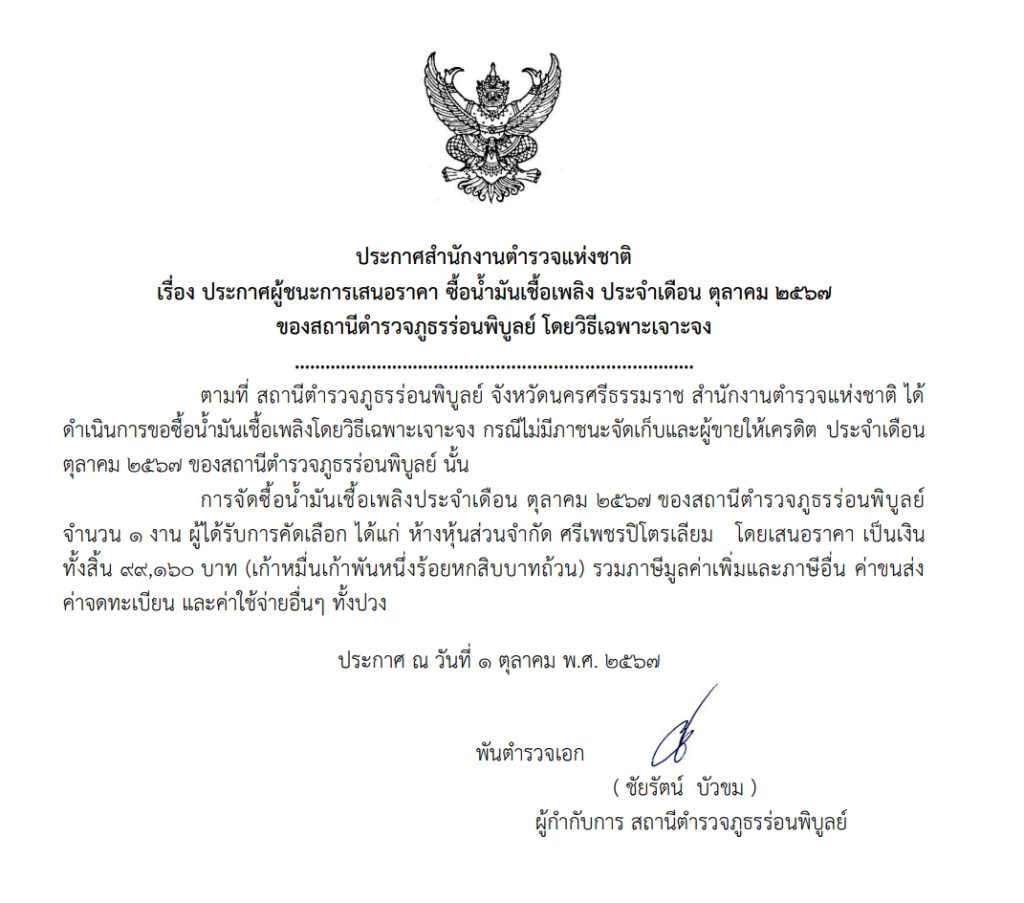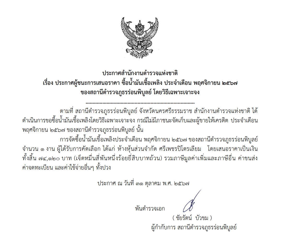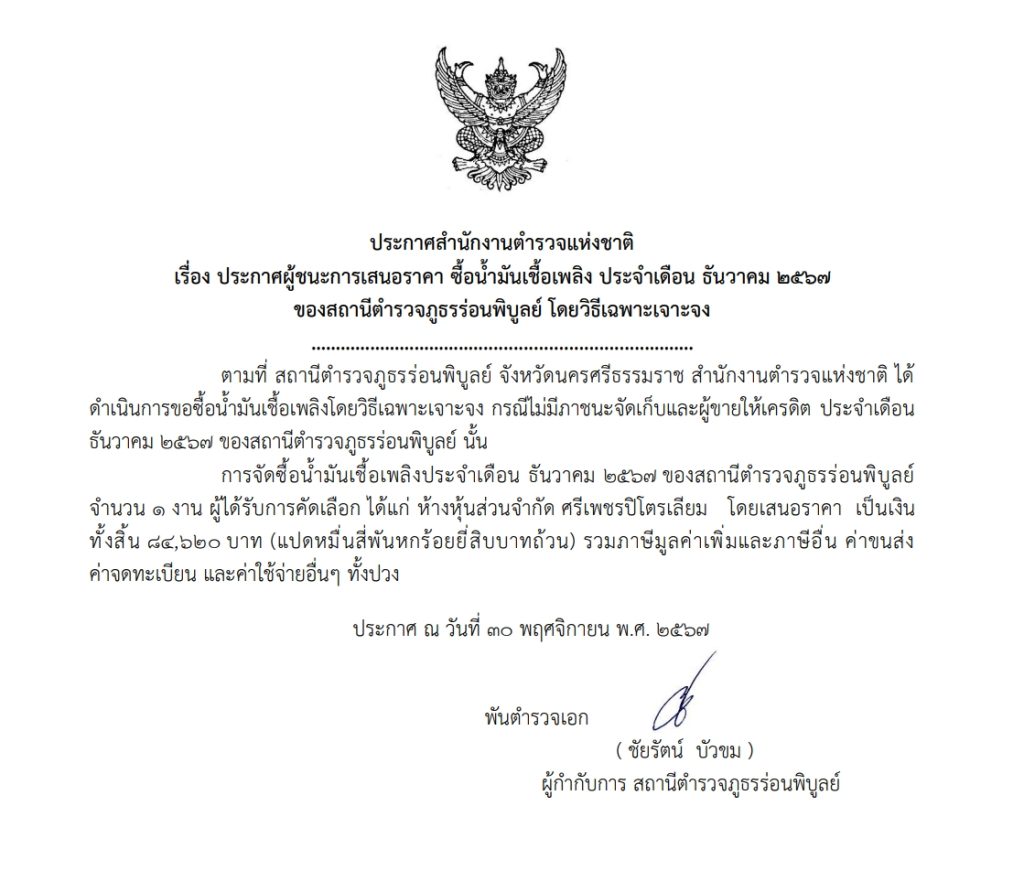 จัดซื้อน้ำมันเชื้อเพลิง พ.ย.67