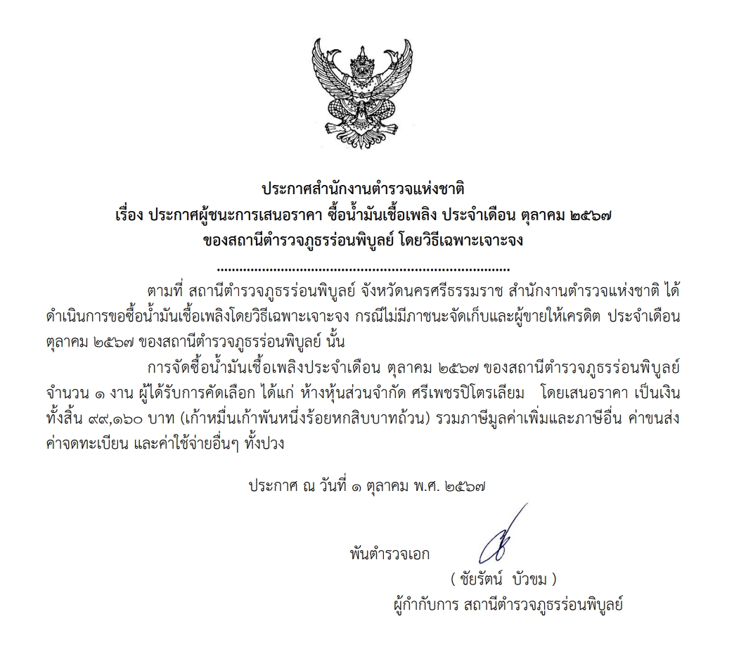 จัดซื้อน้ำมันเชื้อเพลิง ต.ค.67