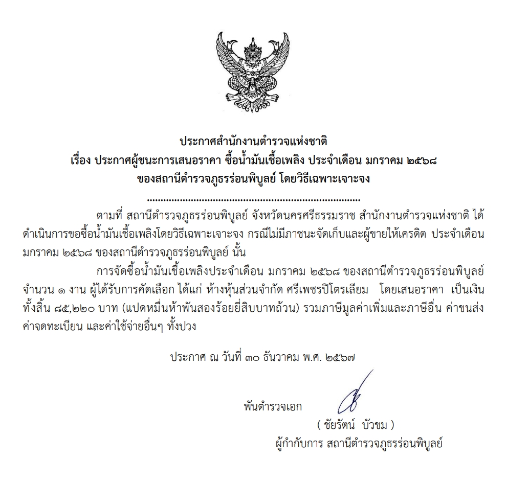 จัดซื้อน้ำมันเชื้อเพลิง ธ.ค.67