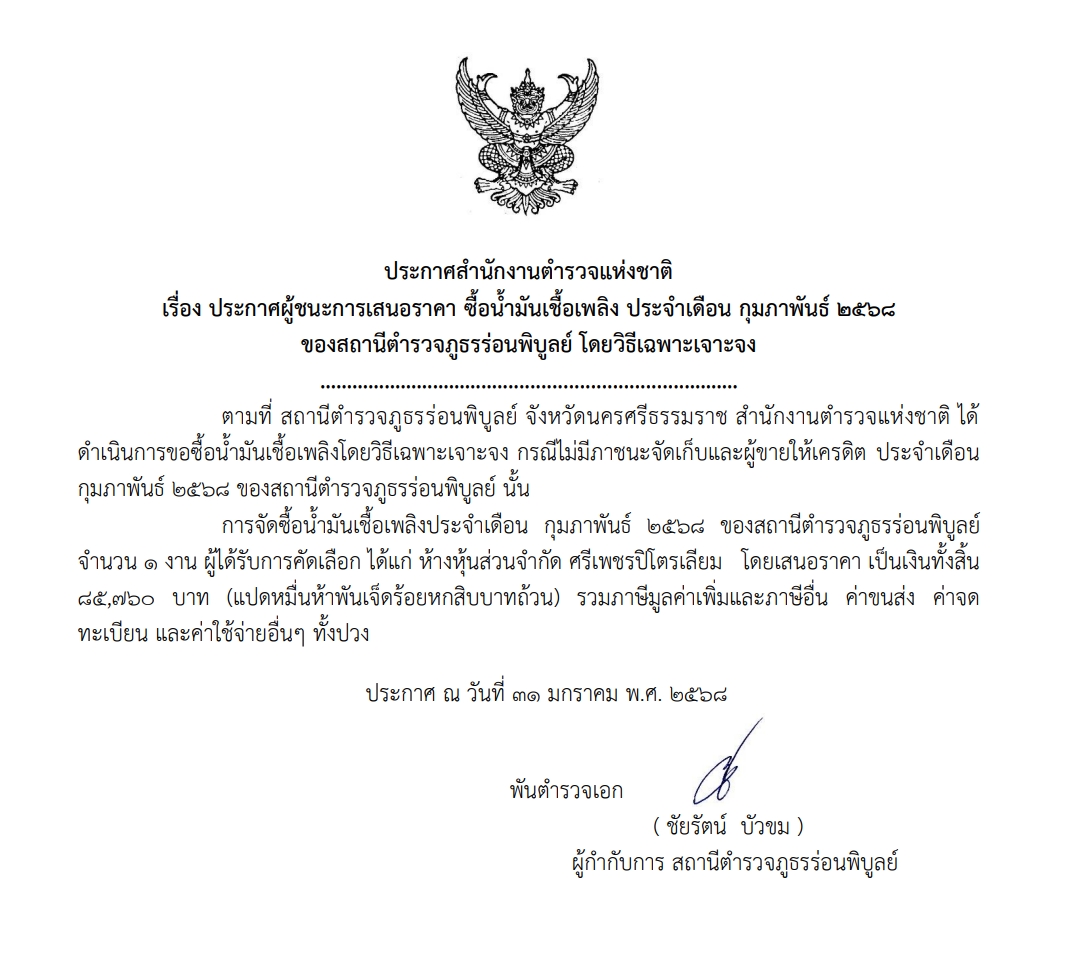 จัดซื้อน้ำมันเชื้อเพลิง ก.พ.68
