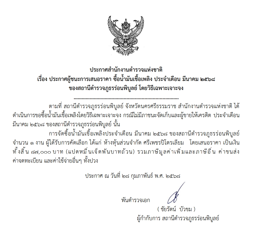 จัดซื้อน้ำมันเชื้อเพลิง มี.ค.68