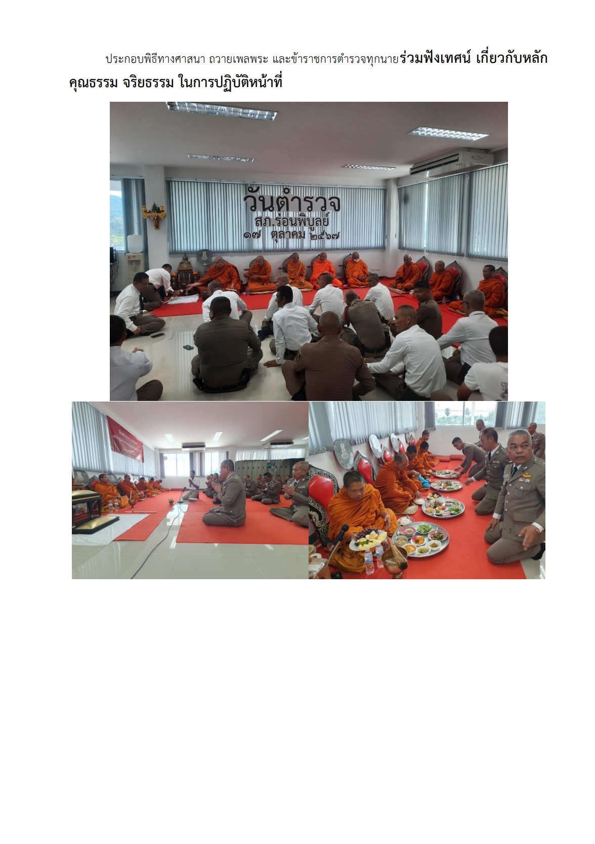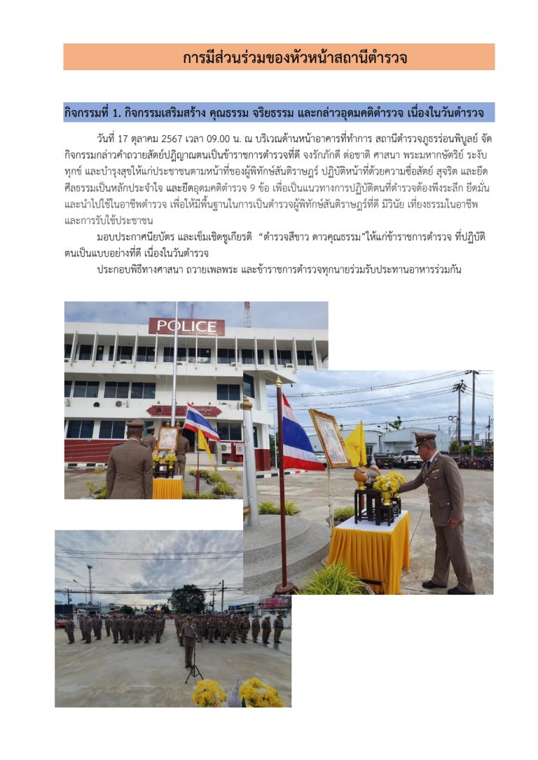 กิจกรรมที่ 1. กิจกรรมเสริมสร้าง คุณธรรม จริยธรรม และกล่าวอุดมคติตำรวจ เนื่องในวันตำรวจ