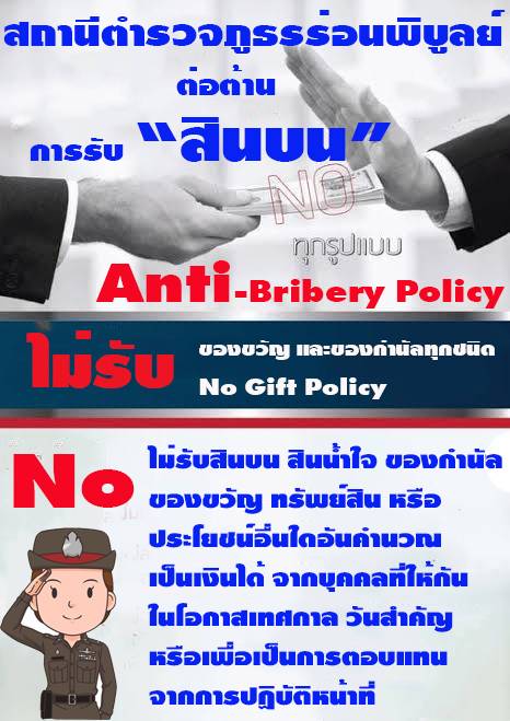 วันจันทร์ที่ 6 ม.ค.67 เวลา 09.00 น. สภ.ร่อนพิบูลย์ นำโดย พ.ต.อ.ชัยรัตน์ บัวขม ผกก.สภ.ร่อนพิบูลย์ พ.ต.ท.วินัย รัตนจิตต์ รอง ผกก.ป. สภ.ร่อนพิบูลย์ พ.ต.ท.ไพฑูรย์ อินทรพิบูลย์ รอง ผกก.สส.สภ.ร่อนพิบูลย์ พ.ต.ท.ดุษฎี อู่วงศ์ รอง ผกก.(สอบสวน) สภ.ร่อนพิบูลย์ พร้อมด้วยข้าราชการตำรวจในสังกัด ประชุมชี้แจงประกาศนโยบายต่อต้านการทุจริต ต่อต้านการรับสินบน ไม่รับสินบน สินน้ำใจ ของกำนัล ของขวัญ ทรัพย์สิน หรือ ประโยชน์อื่นใดอันคำนวณเป็นเงินได้ จากบุคคลที่ให้กันในโอกาสเทศกาล วันสำคัญ หรือเพื่อเป็นการตอบแทนจากการปฏิบัติหน้าที่ ณ ห้องประชุม สภ.ร่อนพิบูลย์ Facebook iconFacebookTwitter iconTwitterLINE iconLine